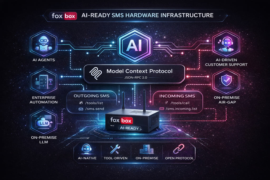 FOXBOX is proud to be the first SMS hardware gateway in the world to implement MCP (Model Context Protocol), bringing native AI and automation interoperability to on-premise SMS infrastructure.